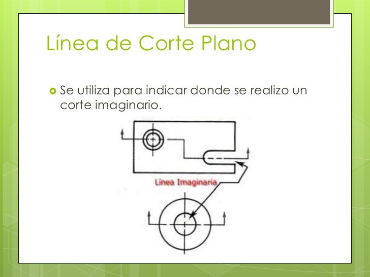 - Línea de corte plano: se utiliza para indicar donde se realizó un corte imaginario.
